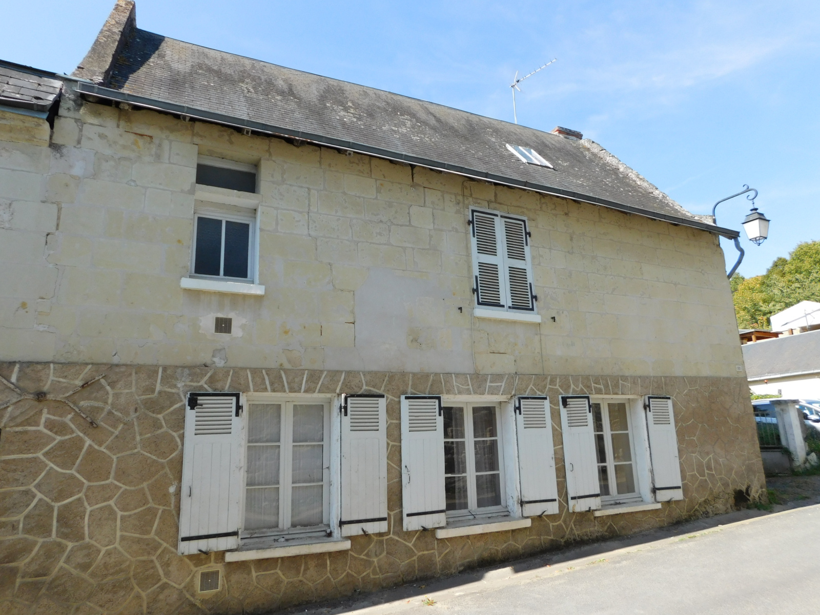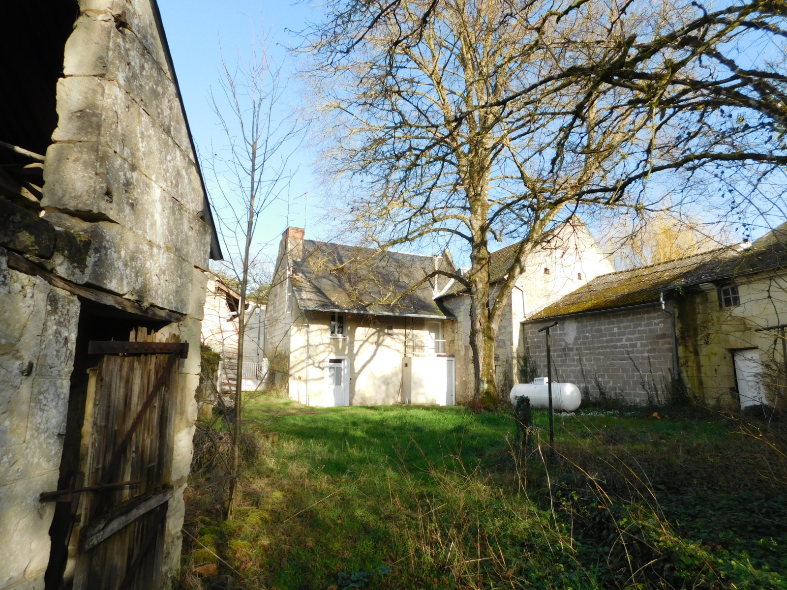 Réf:1951.EXCLUSIVITE VENDU PAR NOS SOINS.Sud Saumur (15 mn) Maison de village offrant au rdc : entrée cuisine (carrelage) 16,55m² ; séjour (carrelage) 17m² ; buanderie avec départ escalier (chaudière gaz et wc) 15m². À l'étage : palier couloir ; 2 chambres (17,60m² et 14,40m²) ; salle de bain (6,40m²) comprenant douche, wc, baignoire et vasque). Grenier sur le dessus, dépendances dont une faisant office d'abri voiture (30m²). Terrain pour environ 1600m² avec puits. Chauffage central gaz. À pied des petits commerces.
